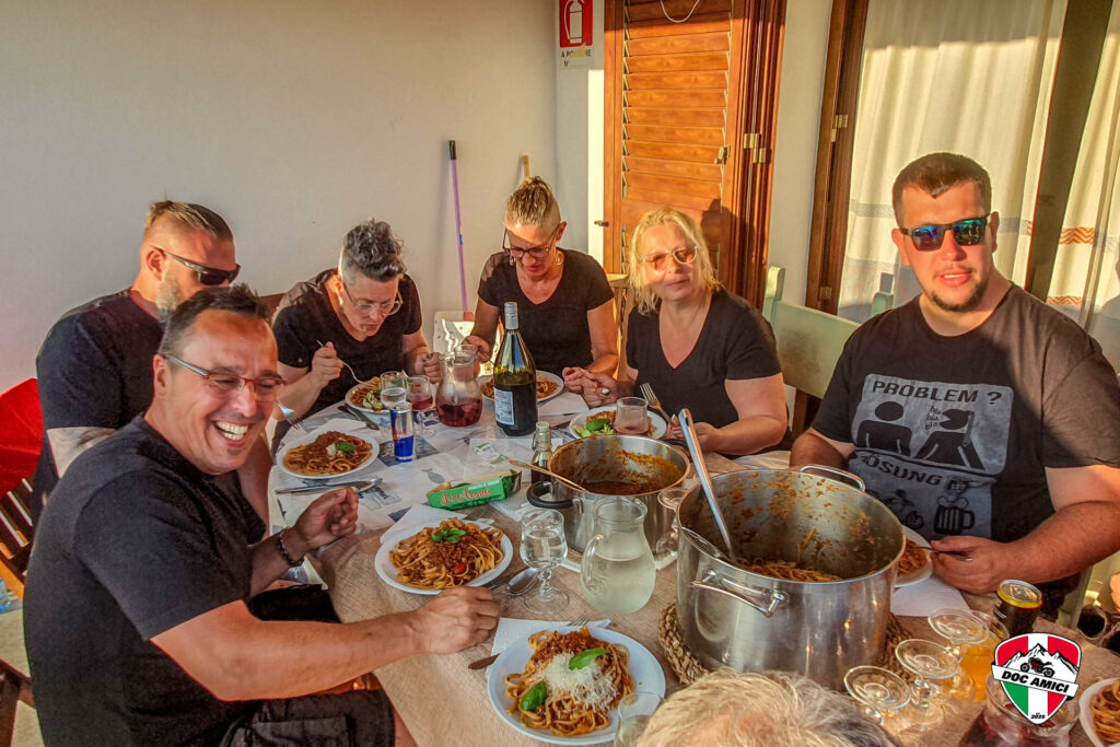 Die Abende verbrachten wir entweder in lokalen Restaurants oder mit gemeinsamen Kochaktionen. Von Pastapartys bis zum gemütlichen Grillen war alles dabei – und natürlich durften sardische Spezialitäten nicht fehlen. Etwa auch beim Frühlingsfest in Bari Sardo. Besonders lustig waren die spontanen Geschichten und Erlebnisse, die wir uns nach den Ausfahrten erzählten.